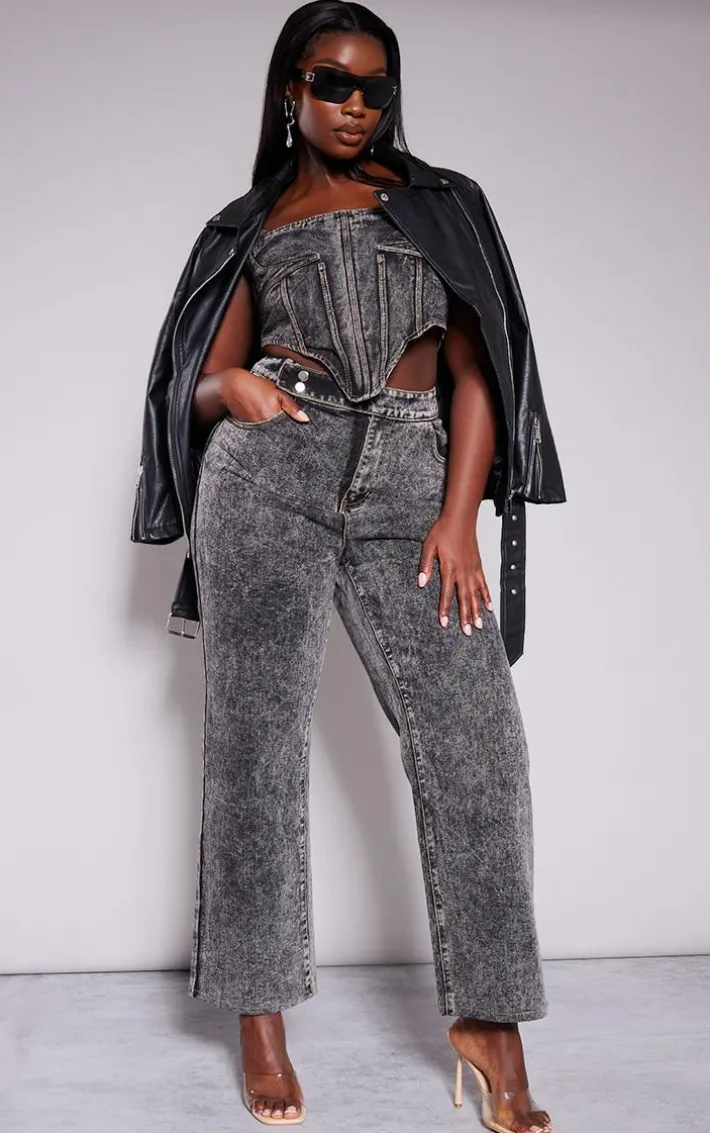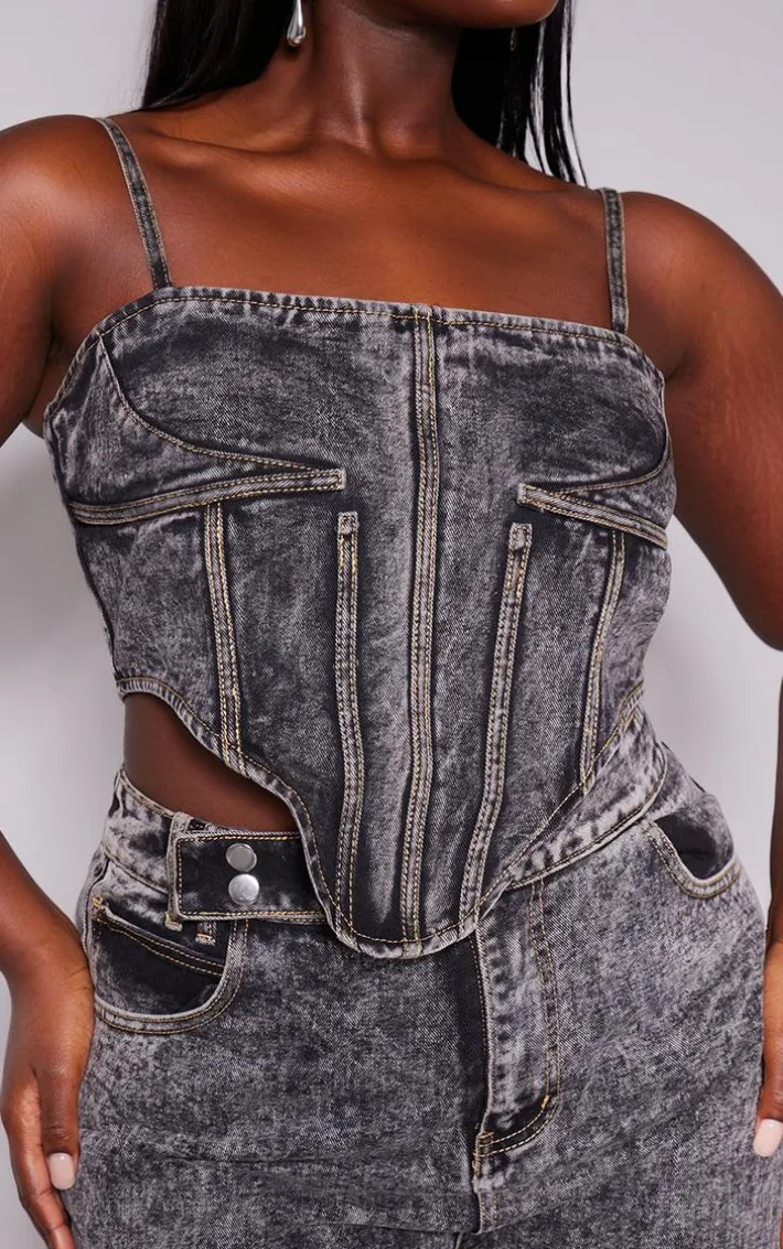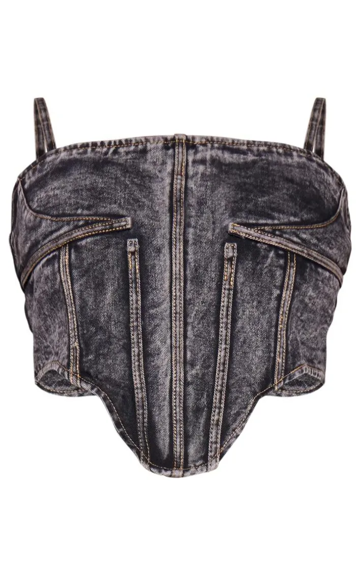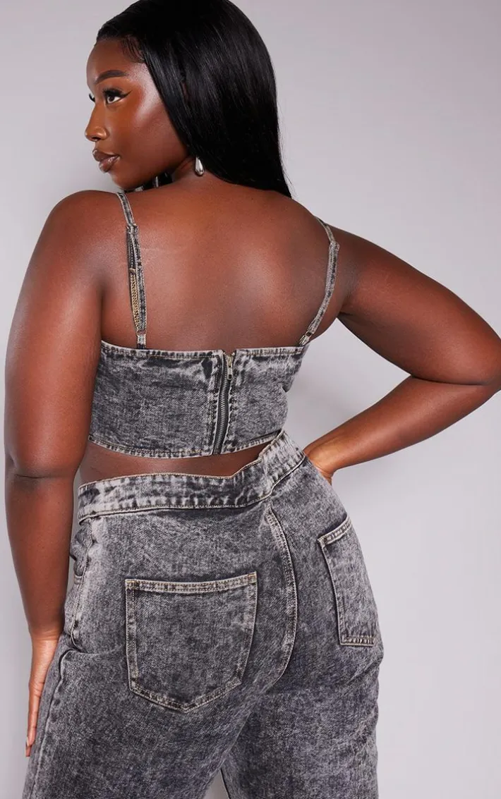 When the weekend calls for a little drama this plus grey acid wash seam detail denim corset will have you at the center of attention. It is made using a grey acid wash denim material with seam detailing and a corset style, what more could you want ? Style this corset with clear slip-on heels and statement accessories to elevate the look further.