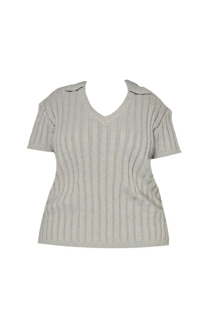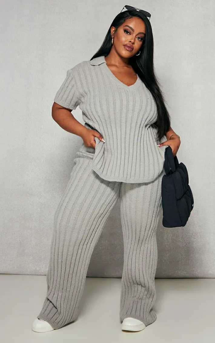 Your off-duty look is sure to have a serious upgrade with this plus grey brushed short sleeve v neck knit top. There’s nothing better than kickstarting the day in something comfy and this women’s knit top is the one for you. Made from a grey brushed knit material with short sleeves and a V neck design, how could you resist? Style effortlessly with the matching bottoms, box-fresh sneakers and your everyday essentials to elevate the vibe.