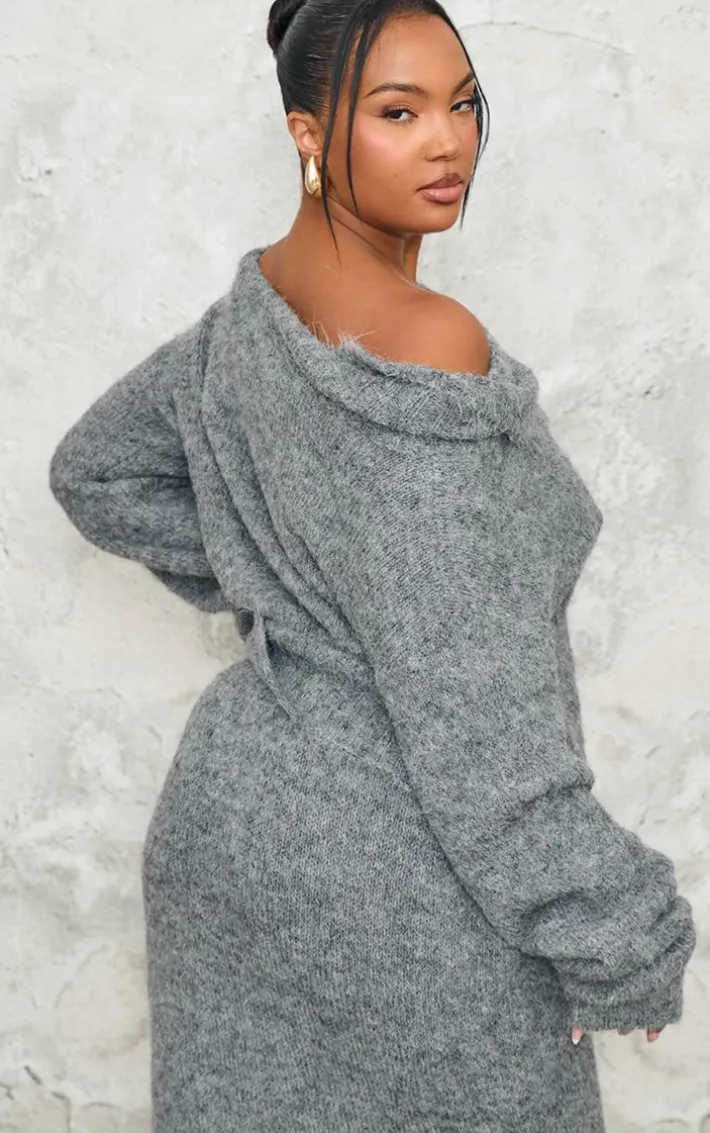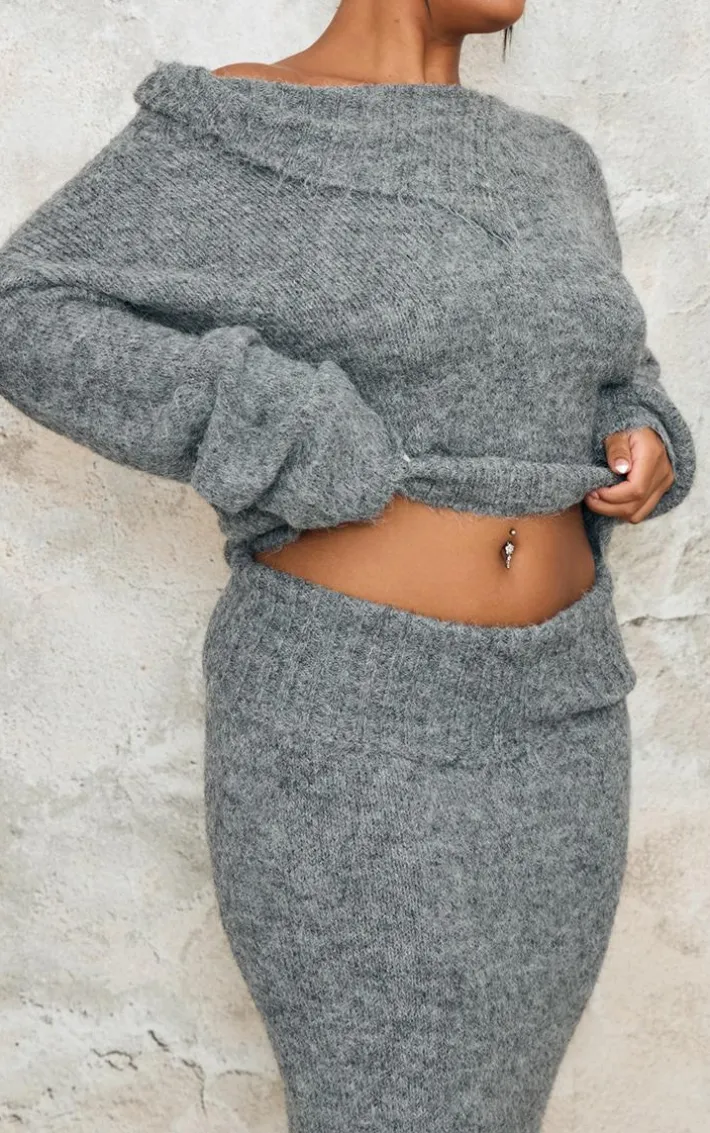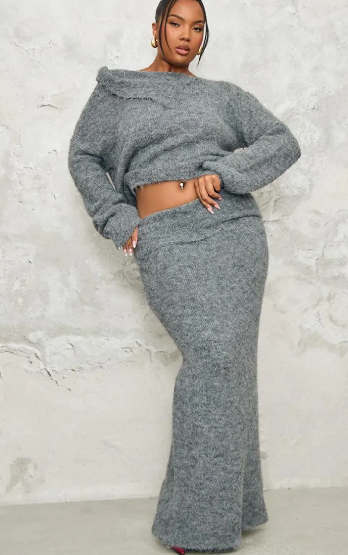 This plus grey marl knit asymmetric overlay oversized sweater is an unreal addition to your collection. Brought to you in a dreamy grey marl shade, with a knit material for the ultimate comfort, an asymmetric overlay design and oversized fit, you’ll be reaching for this on all your chilled days and beyond. Pair with the matching maxi skirt and a pair of heels for a look we love.