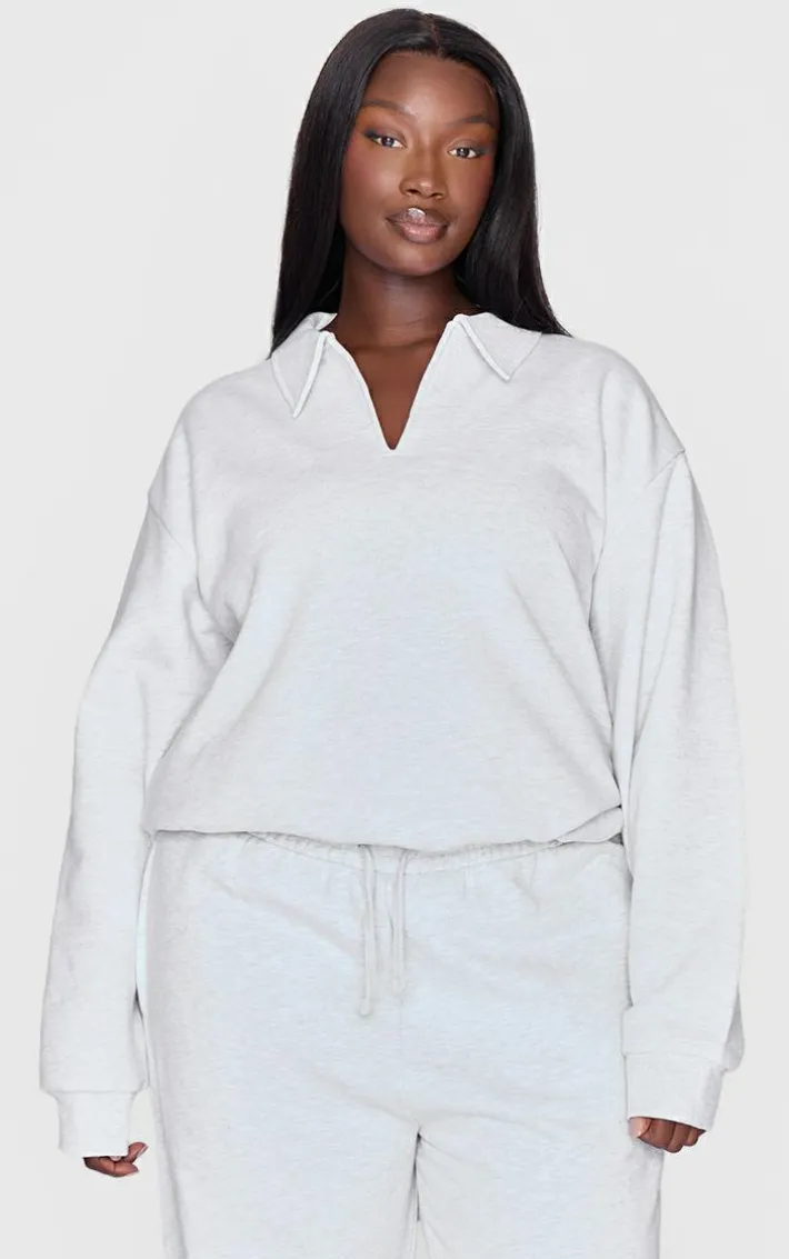 Look all kinds of chic in this plus grey premium collar oversized Sweatshirt. Brought to you in a grey premium material with a collar detail and an oversized fit, you can wear this Sweatshirt for those on the go days and beyond. Team with the matching plus pants and your fave sneakers to finish off the look everyone will want.