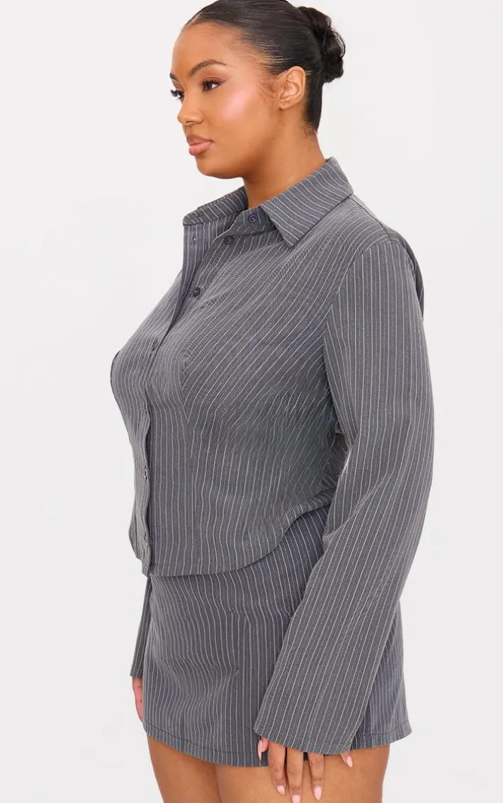 Take a chance on this plus grey tailored woven glitter pinstripe micro mini skirt for a look you won’t regret. Brought to you in a versatile grey shade, with a tailored woven material, must have glitter pinstripe design and micro fit, this mini skirt deserves to be seen. Pair with the matching shirt, court heels and simple accessories to complete the look.