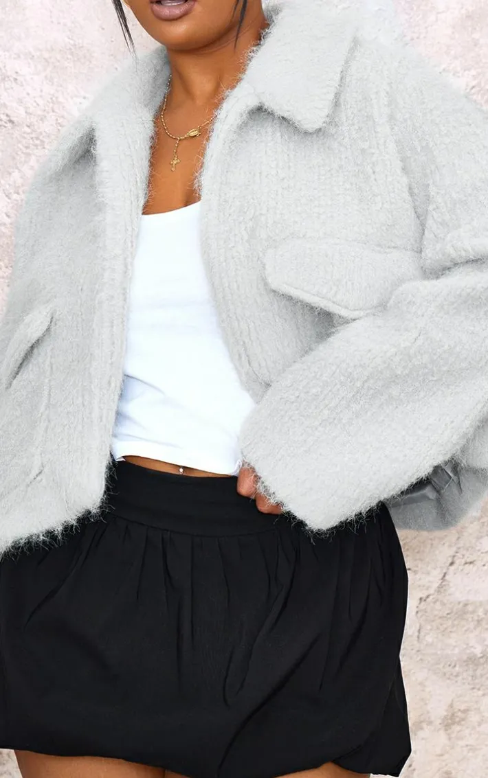 Add a cosy finishing touch to your outfit of the day with this plus grey wool look pocket detail jacket. Brought to you in a grey wool look material with pocket detailing and a comfy fit, what more could you need? Layer this wool look jacket with a mini skirt, a white tee and boots for a look that is sure to earn you some serious style points.