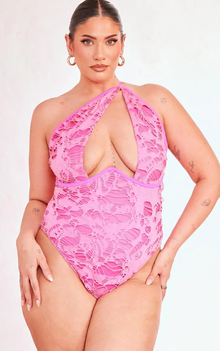 Turn up the heat on your vacay wardrobe with this plus hot pink distressed cut out swimsuit, it is everything we are loving for those poolside days and beyond. Made with a hot pink distressed material with a cut out design and a figure-flattering fit, what’s not to love? Style this plus swimsuit with the matching sarong, platform sandals and your fave hoop earrings for a next level look.