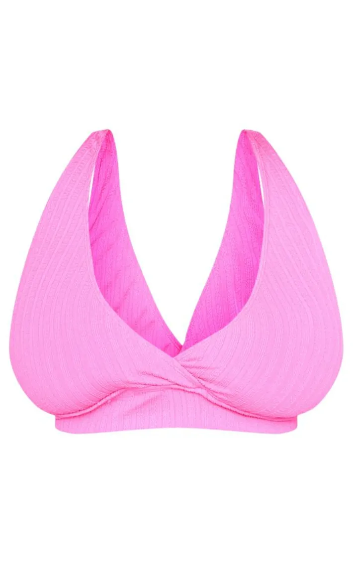 Add some bright hues to your vacay wardrobe with this plus hot pink textured wrap bikini top, it is everything we are loving for those poolside days and beyond. This bikini top features a hot pink textured material with a wrap design and a figure-flattering fit, what’s not to love? Style this plus bikini top with the matching bottoms, a cover up and statement hue platform sandals for a look that everyone will want.