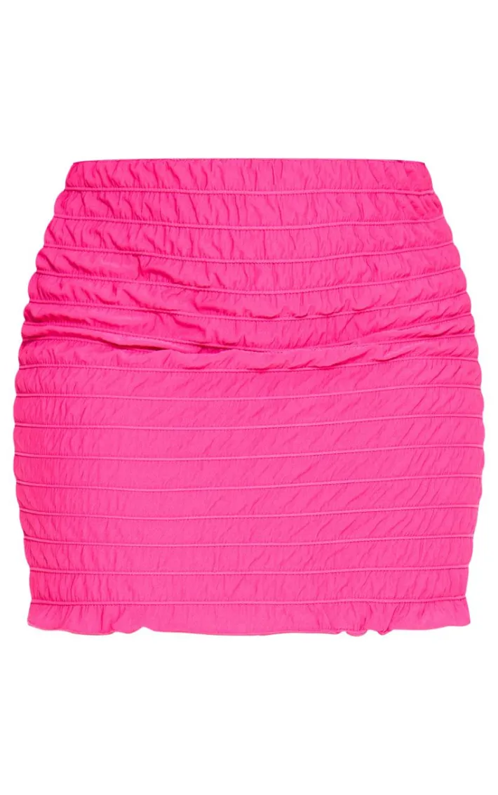 Add a pop of pink to your new season wardrobe with this plus hot pink tiered ruched mini skirt. Brought to you in a hot pink material with a tiered design and ruched detail, how can you resist? Style with the matching top, gold heels and a statement mini bag for a look like no other. It’s a yes from us.