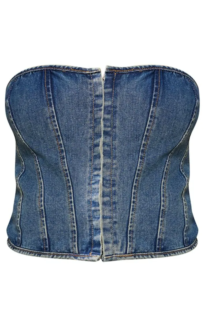 Add a little attitude to your new season wardrobe with this plus indigo blue wash hook and eye bandeau denim corset, we’re obsessed. Brought to you in an indigo blue wash material with a hook and eye design and a bandeau style, you’ll be earning all the style points in this plus corset. Pair it with some wide leg jeans, clear slip-on heels and gold hoop earrings for the perfect weekend-ready fit.
