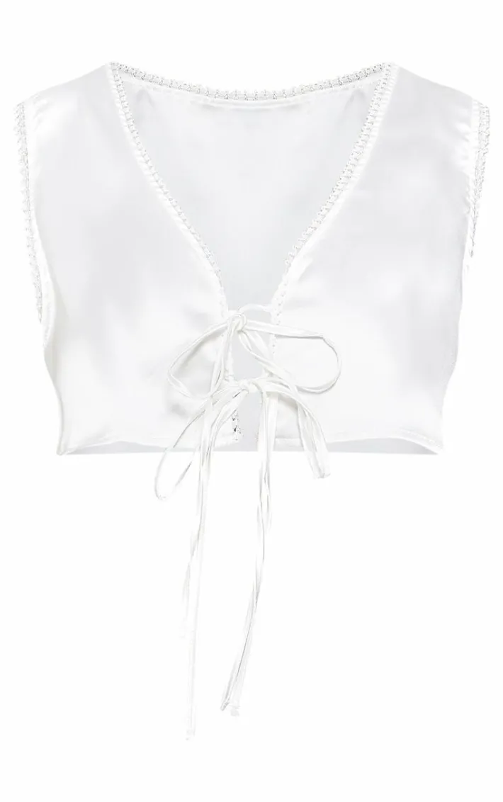 When the weekend calls so does this plus ivory satin tie front V neck top. Brought to you in a ivory hue satin material with a tie front fastening and V neck design, this top is a must have. How can you not fall in love? Style with the matching top, white heels and gold accessories for a flattering finish we can’t stop staring at.