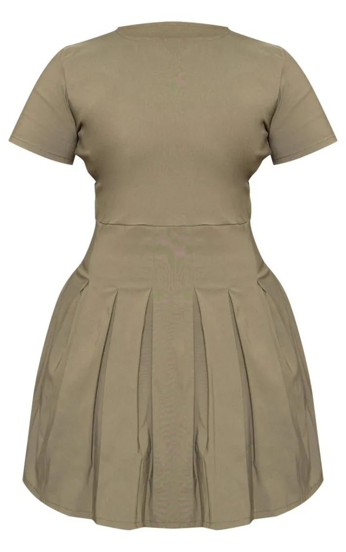 Take on those off-duty days in style with this plus khaki pleat hem detail tailored mini dress. Brought to you in a khaki hue material with a pleated hem design and a flattering tailored fit, what more could you ask for? Keep it casual and style this mini dress with sneakers and simple gold accessories to complete the look we’re loving.