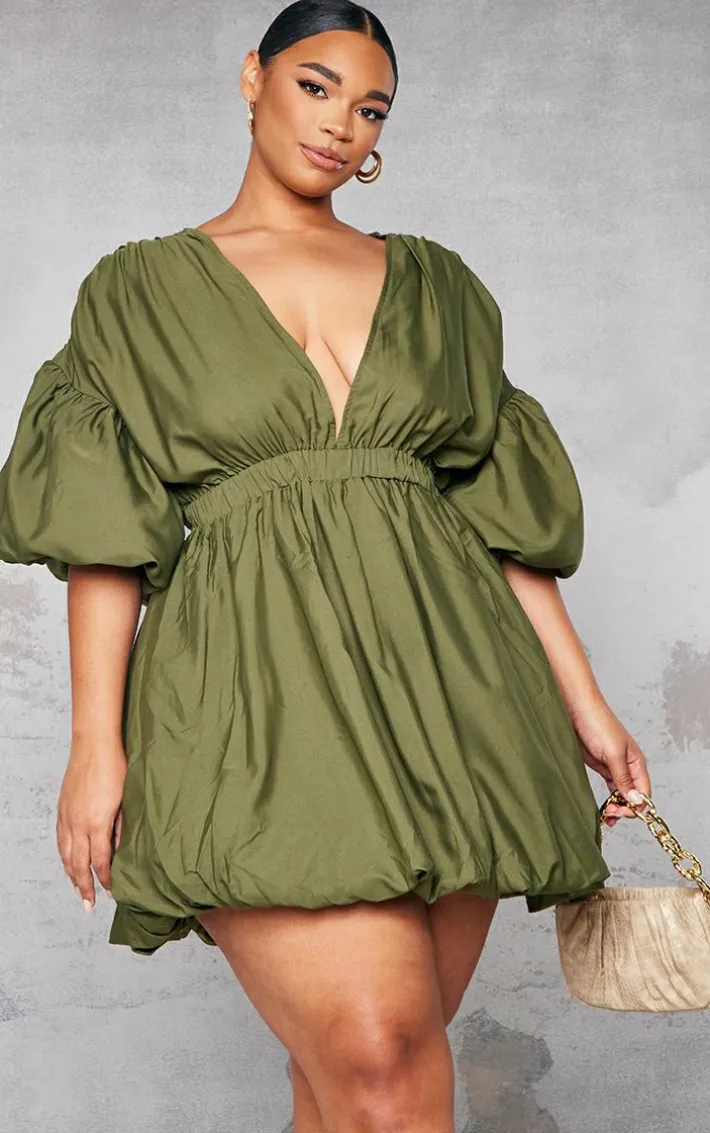 Add some khaki tones into your weekend look with this dress. Featuring a khaki material with puff sleeves and a puffball hem, how could you say no? Team with a mini bag and your trusty high heels for a date night look.