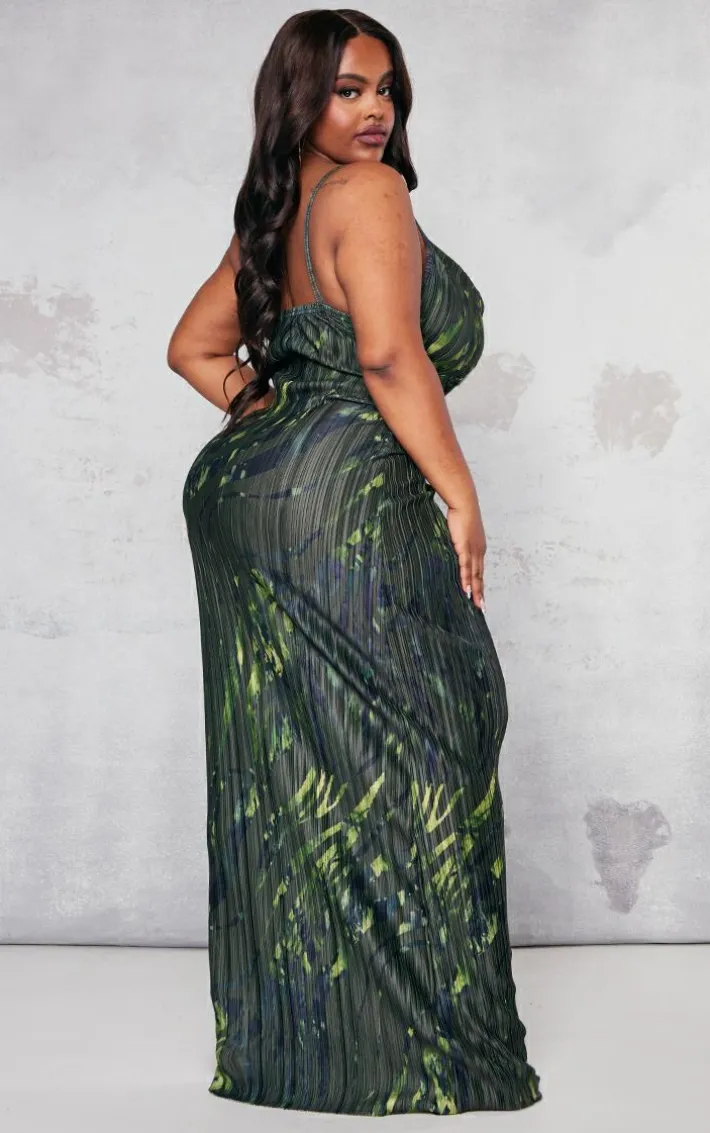 Channel all the fierce vibes into your weekend wardrobe with this maxi dress. Featuring a khaki plisse material with a zebra print, a cowl neckline and a maxi length, we’re obsessed. Wear with clear heels and a statement hue clutch bag for a bold finish.
