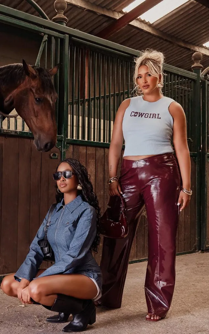 Take the stress out of weekend styling with this unreal plus light blue cowgirl graphic racer crop top. Brought to you in a light blue material with a cowgirl graphic design and a racer detail, you really can’t go wrong with this crop top. Style with clear strap heels and gold accessories for a look that will have eyes on you for all the right reasons.