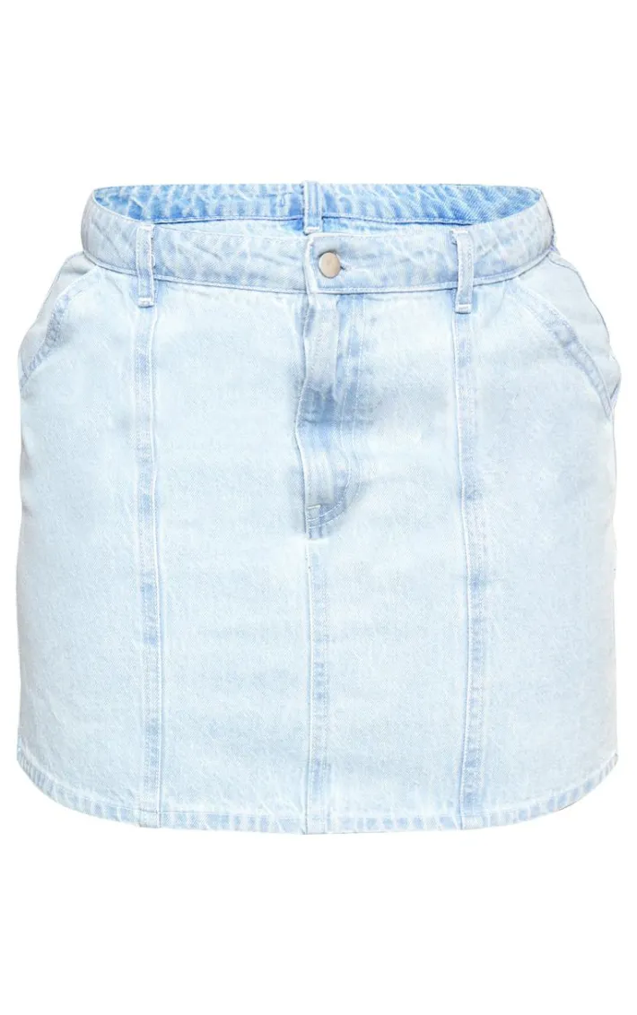 Swap out your usual skirt for this plus light blue wash carpenter pocket detail denim mini skirt. Brought to you in a light blue wash denim material with a carpenter pocket detail and mini length, how can you resist? Style this denim mini skirt with a basic white tee, fresh kicks and staple accessories for an off-duty look we’re loving.