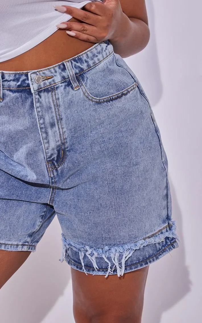 Get ready for the new season with these plus light blue wash distressed longline denim shorts. Made from a light blue wash denim material with distressed detail and a longline length, what’s not to love? These plus denim shorts are just what you need for your off-duty days this season and are sure to be a styling staple for your wardrobe. Style with a basic crop top, platform sandals and minimal accessories for a vibe that won’t go unnoticed.