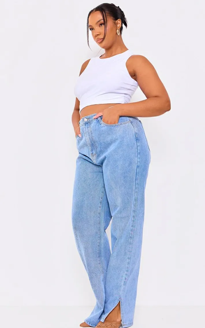 These plus light wash split hem jeans are now a staple for any wardrobe and we are obsessed with this style. Featuring a light wash denim material with a straight leg fit and split hems, what’s not to love? Dress these up with a crop top and heels for a weekend-worthy look.