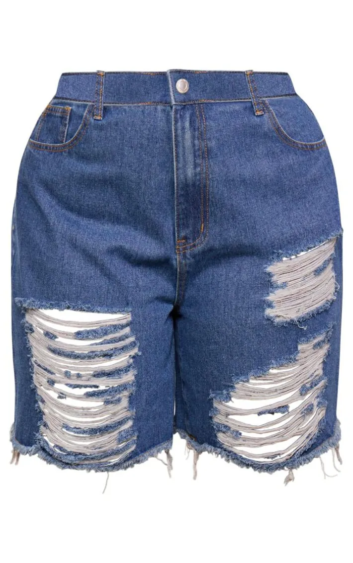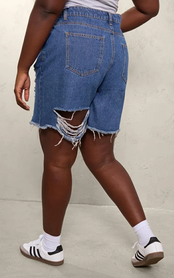 These plus mid blue wash distressed longline boyfriend shorts are sure to be a style staple in your new season wardrobe. Brought to you in a mid blue wash denim material with a distressed design and a longline fit, how can you resist? Keep it casual and team these boyfriend shorts with a t-shirt, sneakers and a mini bag for an everyday look like no other.