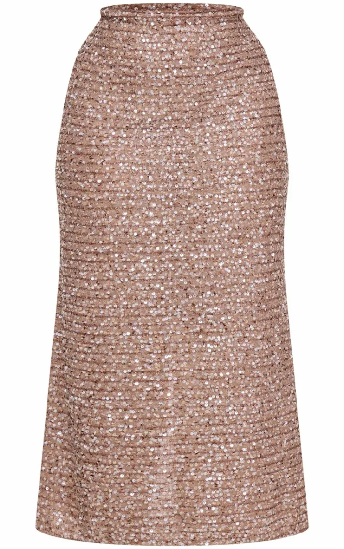 Be the center of attention with this plus mocha sequin maxi skirt. Brought to you in a mocha material with a sequin design, you are sure to bring a touch of luxe to your look. With a maxi length, this skirt is a must-have in your collection. Team with the matching top and a pair of court heels to elevate the look even further.