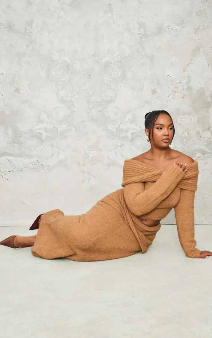 Bring all the cosy feels to your new season wardorbe with this plus mocha soft bobble knit bardot foldover top. Made from a mocha hue soft bobble knit material with a foldover bardot neckline and long sleeves, what’s not to love? Style this mocha top with the matching skirt, heels and gold accessories for a look that is sure to make heads turn.