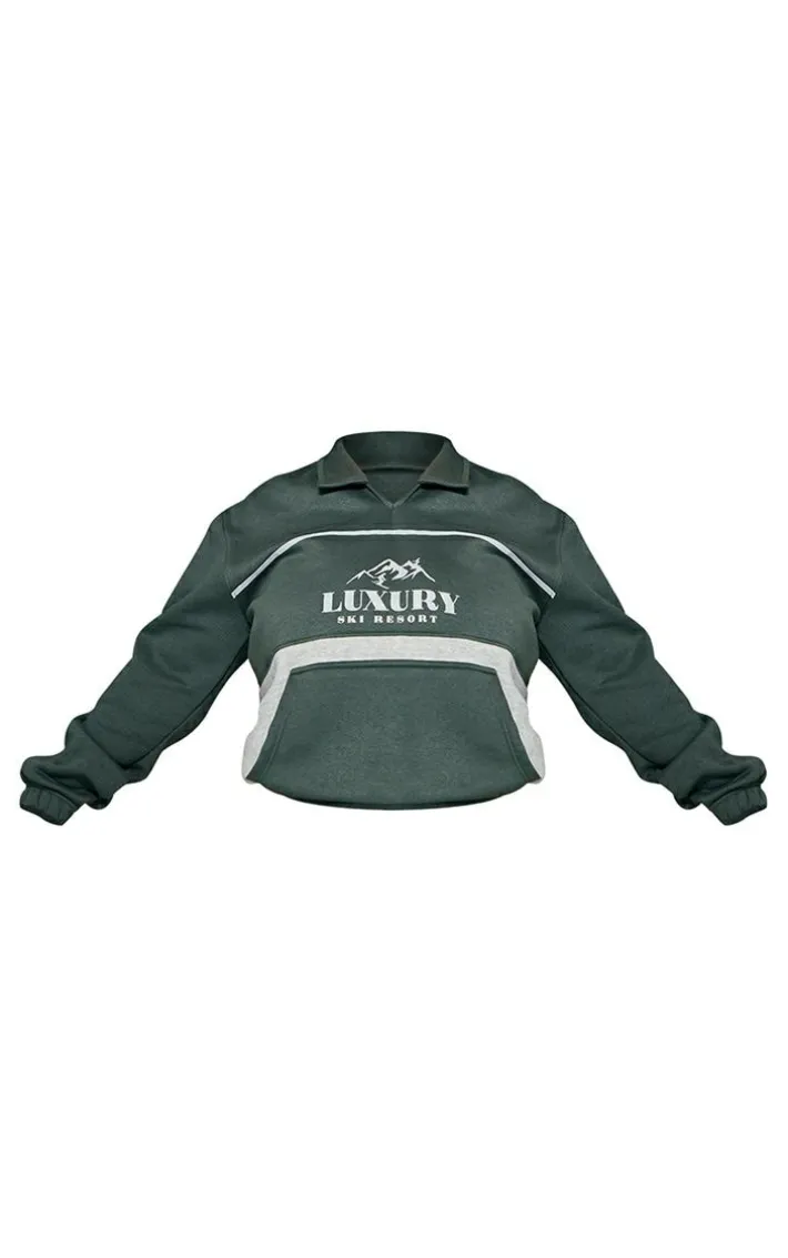 Your off-duty wardrobe deserves a refresh and this plus moss green luxury ski resort graphic sweatshirt is the perfect piece to add to yours. Its moss green hue material is so fresh for the new season and its ‘Luxury Ski Resort’ graphic print gives it a chic finish. This plus sweatshirt has a collar and pocket detail adding a luxe vibe to your casual look. For the ultimate chilled combo, wear with the matching sweatpants, chunky white sneakers, and a tote bag.