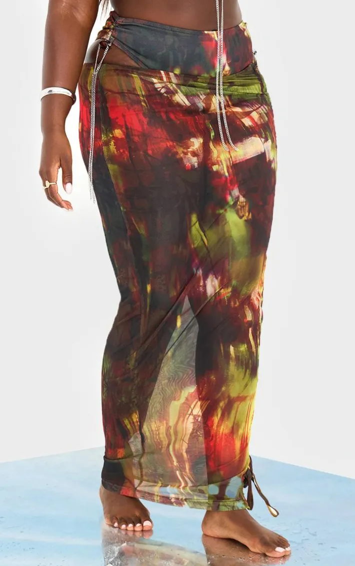 Inject some statement prints into your vacay wardrobe with this plus multi abstract print mesh lace up maxi beach skirt. Brought to you in a multi hue mesh material with an abstract print design, lace up detailing and a flattering maxi fit, how can you resist? Style this beach skirt with the matching bikini and statement accessories for a look that is sure to make heads turn.