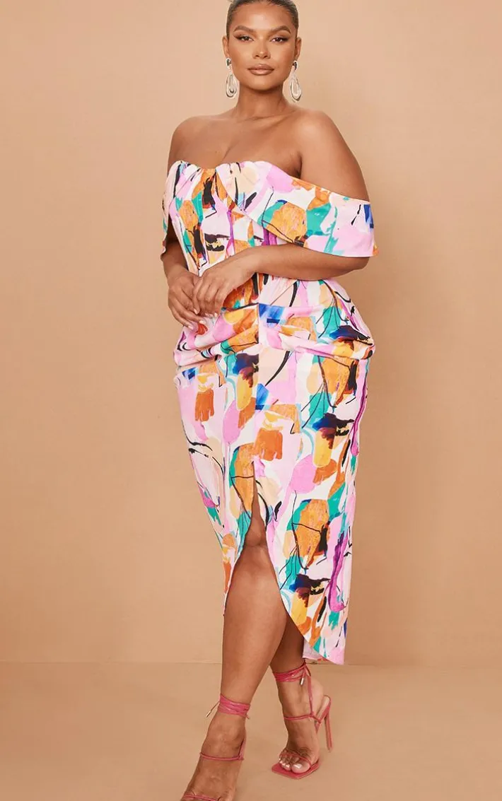 Get ready for that upcoming occasion with this dress. Featuring a multi hue material with a bardot neckline, ruched detailing and a figure-skimming fit. Style this with strappy heels and a shoulder bag to complete the look.