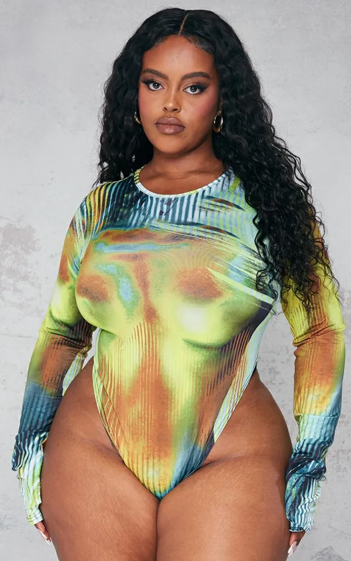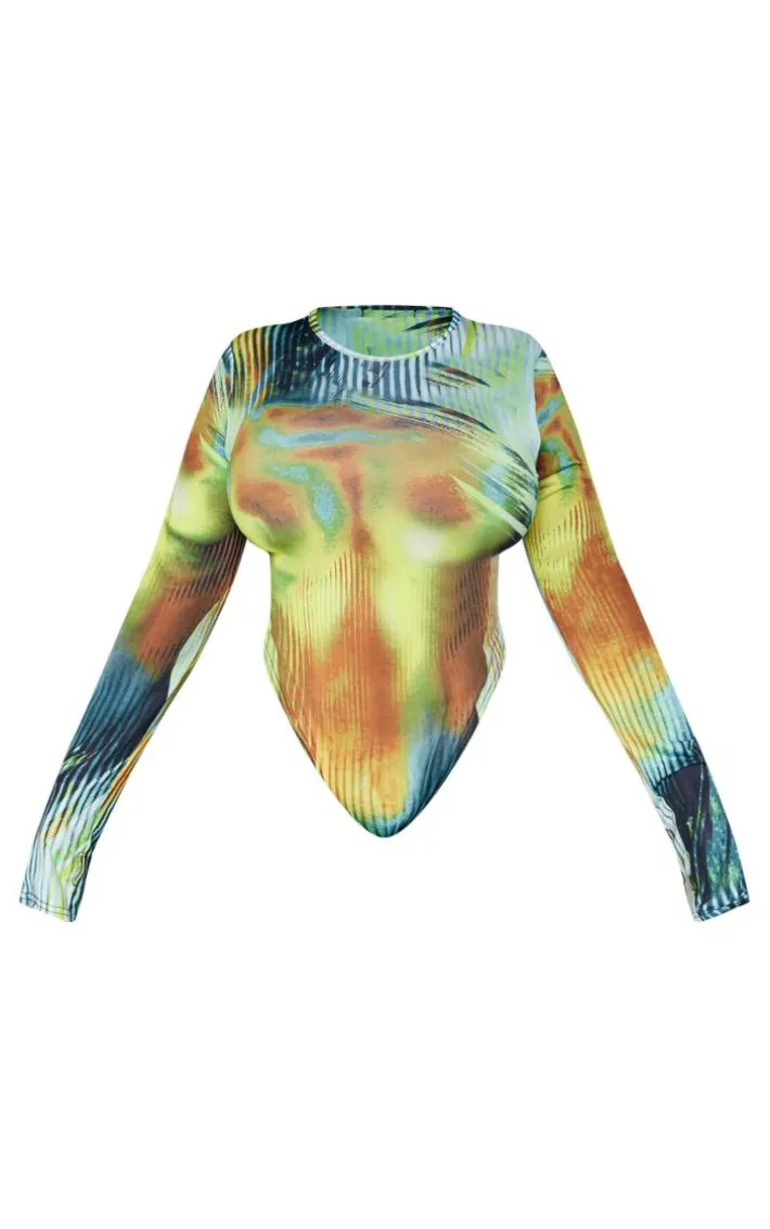 Make a serious statement this season with this bodysuit. Featuring a multi body print material with a high leg fit, what’s not to love? Wear with the matching skirt and your fave high heels to complete this unreal look.