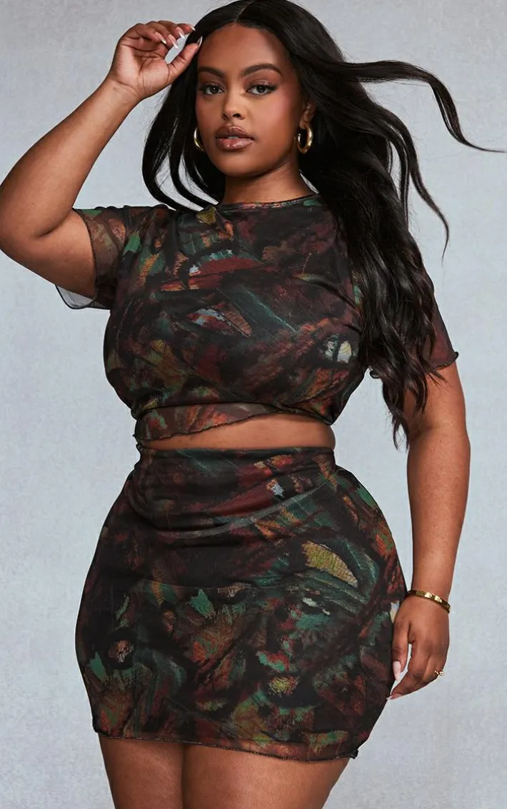 Keep your weekend vibe fiercely feminine with this top. Featuring a mesh material with a multi-print design and a lettuce hem detail. Team with the matching skirt and your go-to heels for a look that will turn heads.
