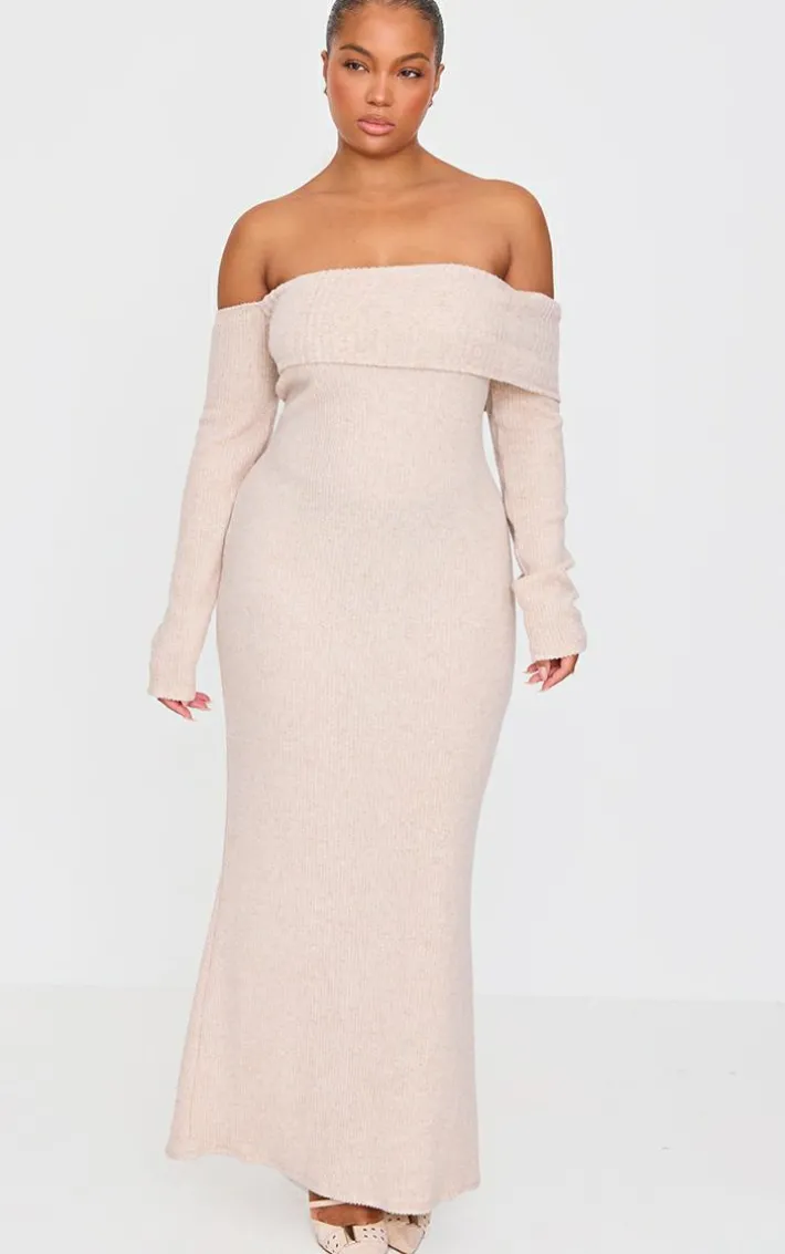 This plus oatmeal brushed rib bardot maxi dress is all the new you need this season. With its chic brushed rib material, versatile oatmeal hue and bardot neckline, deciding what to wear on those colder weather days just got easier. Pair with cream heels, simple gold hoops and a slicked back bun for an elevated finish.