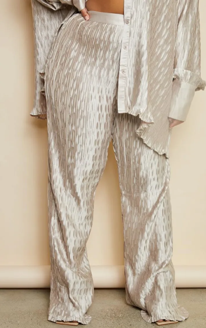 Look all kinds of chic with these bottoms. Featuring an oatmeal plisse material with a wide leg design, we are obsessed. Pair with matching top and gold accessories for a look that will get you all the likes.