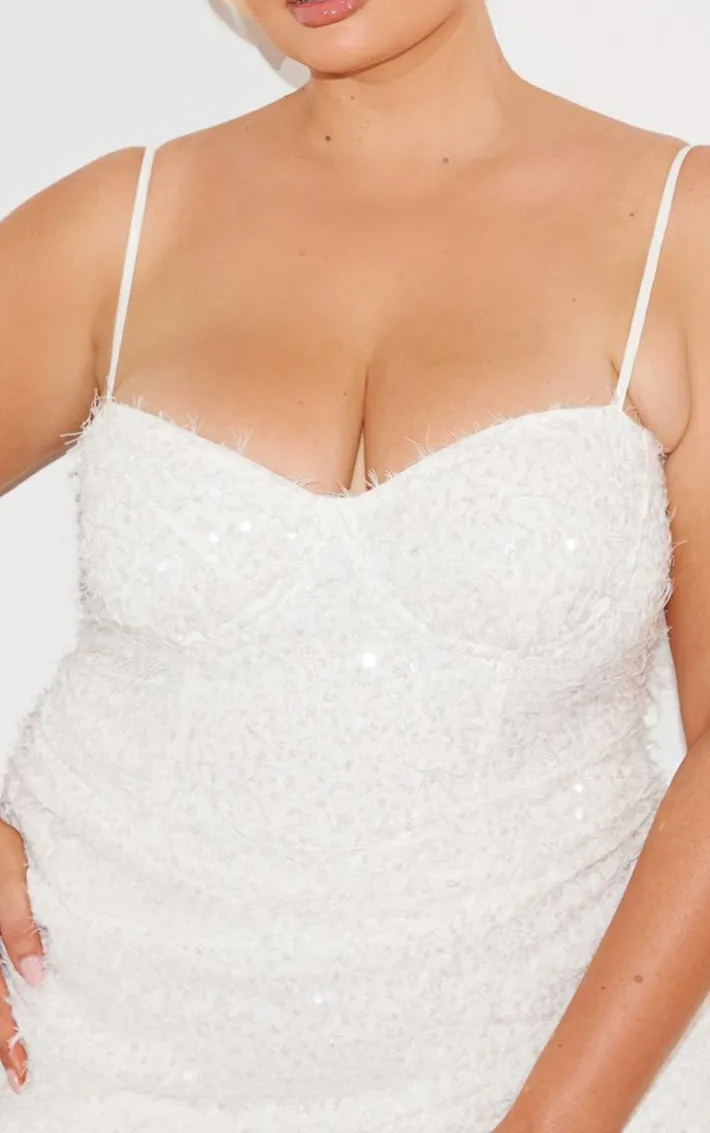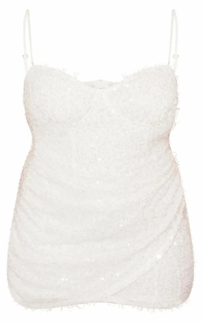 This plus off white sequin feather drape mini dress is here to solve all your what to wear dilemmas. We’re obsessed with its off white hue, feather drape design and glam sequin pattern. Bring the look together with white court heels and your fave jewelry for your next big event. We’ll see you at the party.