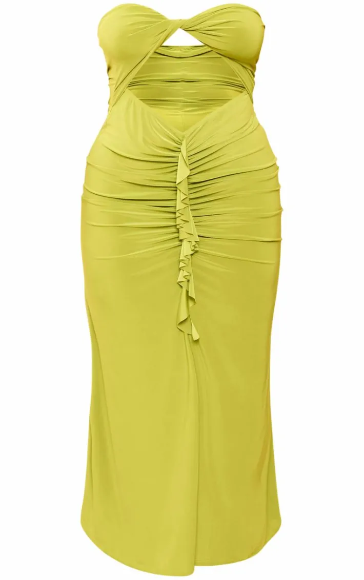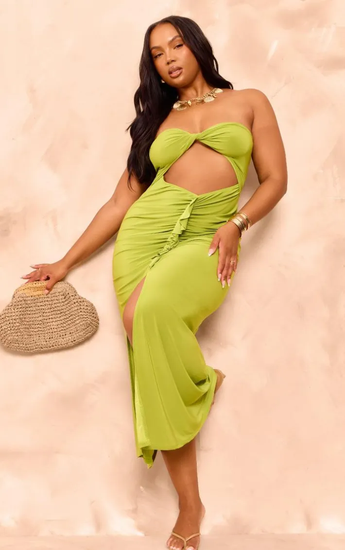 Create a look no one will forget with this plus olive bandeau twist front bust maxi dress, we’re obsessed. This plus dress is brought to you in an olive material with a twist front design and a maxi length, what more could you ask for? Style this plus dress with slip-on heels and a raffia bag for a look that will get everyone talking.