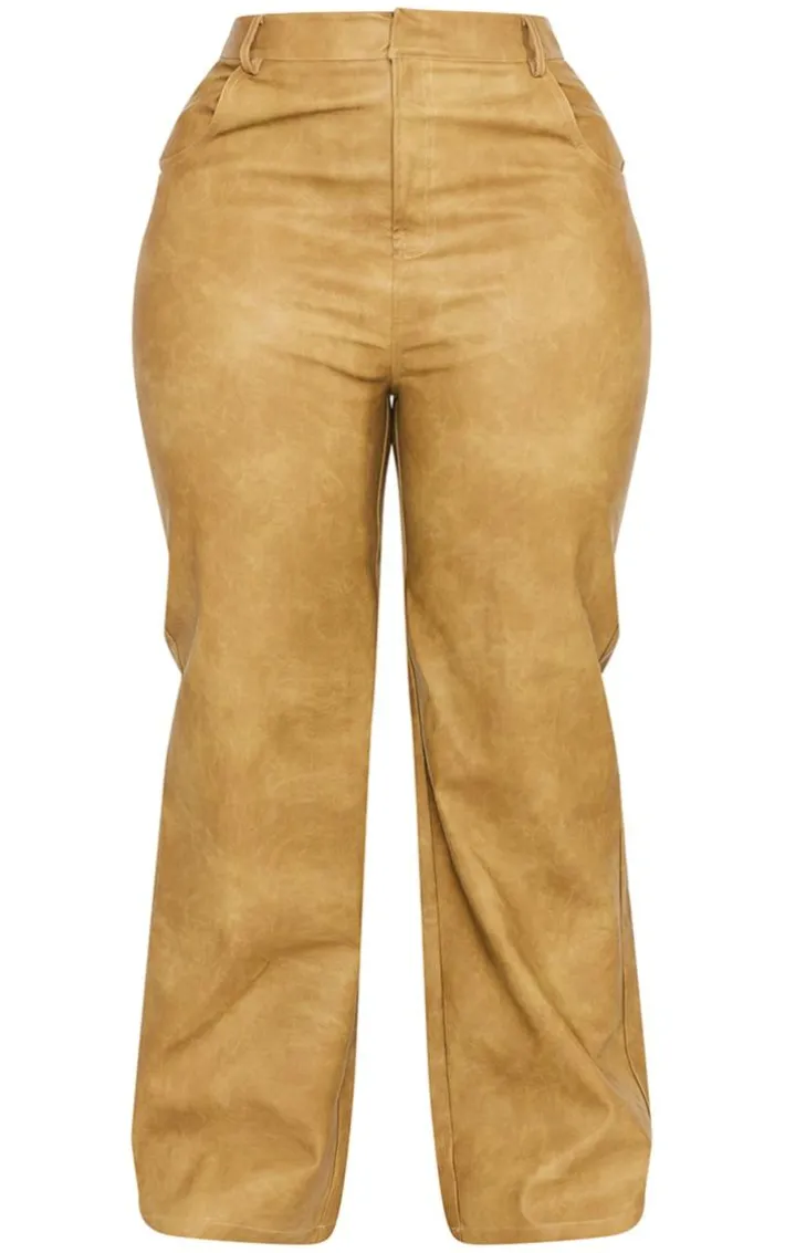 Level up your everyday wardrobe with these plus olive washed faux leather straight leg pants, they’re the perfect piece to take your look from day to night. With an olive hue washed faux leather material, a straight leg design and a figure-flattering fit, you’ll be adding these plus pants straight to your basket. Team these faux leather pants with a basic tee, chunky boots and a tote bag for a cool, off-duty vibe.
