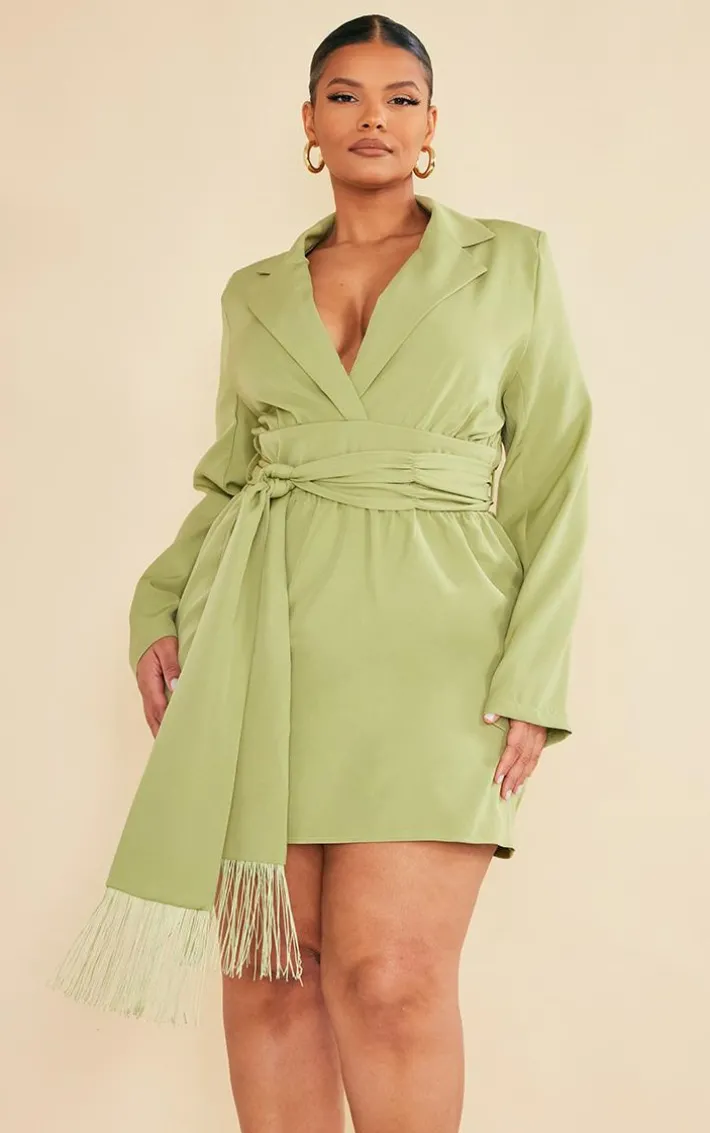 Catch all attention this weekend with this plus khaki wrap front tassel belted dress. Its olive hue material is so fresh for the new season and its wrap front design is seriously flattering. This plus dress is the ultimate piece for your weekend wardrobe and its tassel belted detail is sure to take your look to new heights. For that flawless finish, add clear heels, gold accessories and a statement clutch.