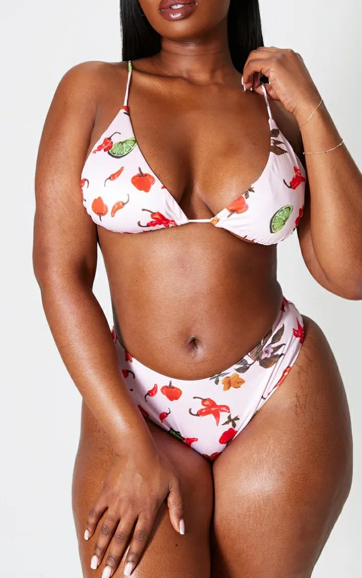 Add some spice to your swimwear collection with these plus pink chilli printed bikini bottoms. Brought to you in a pink chilli print material, these bikini bottoms are turning up the heat. We’re obsessed. Style these with the matching bikini top and pool-side accessories to take your look from 0-100.