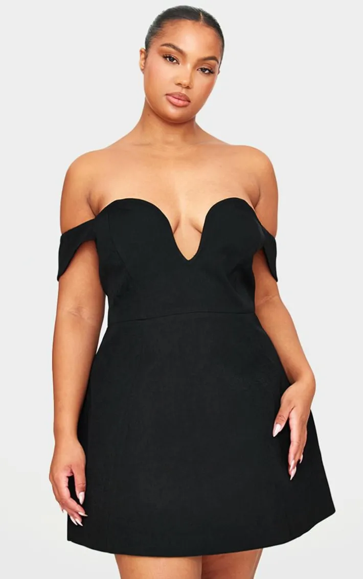 Deciding what to wear just got easier this events season with this plus premium black wired bardot shift dress. Brought to you in a black hue material with a wired bust detail and bardot design, this shift dress is a must have. Pair with slip on heels and simple accessories for a look like no other.