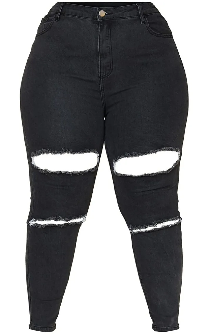 Jeans are essential for any doll and we’re loving this style. Featuring a washed black denim with double rip detailing and a high waisted fit, team these with a tee and barely there heels to complete the look.
