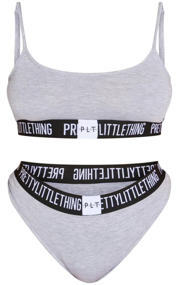 Add some comfort to your look with this lingerie set. Featuring a triangle bra and high waist bottoms both in grey jersey material with a PrettyLittleThing elasticated waistband, we are obsessed. Team this under your outfit of the day to complete the look.