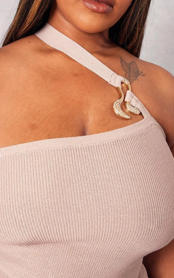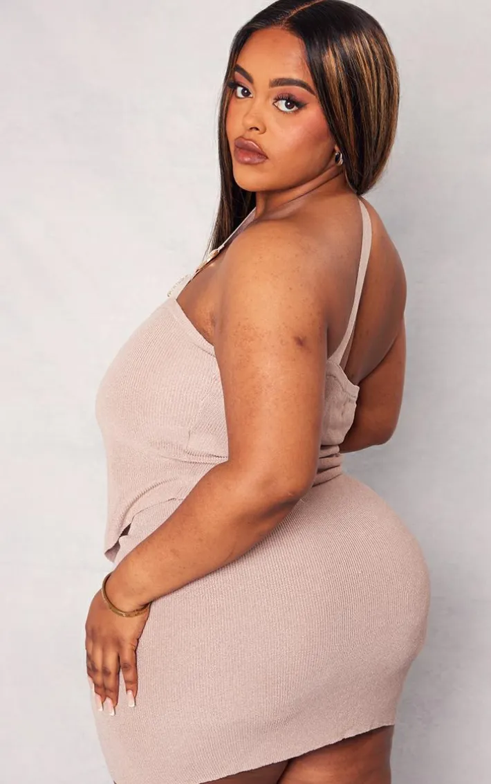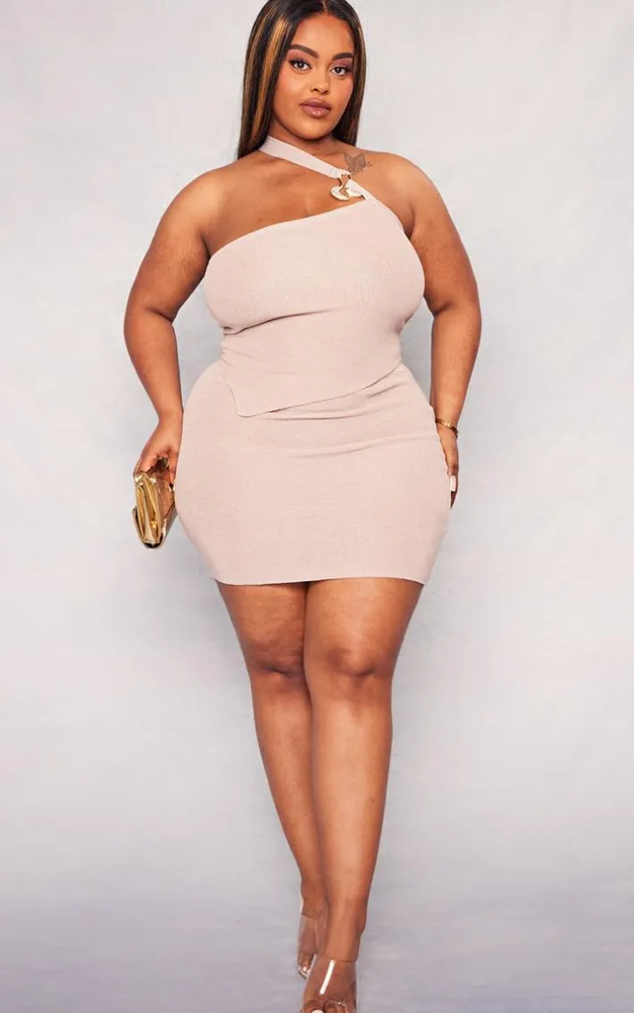 Be on trend this season with this plus rose gold rib knit gold trim asymmetric top. Brought to you in a gold rib knit material with a gold trim and an asymmetric design, you will bring all the edge to your outfit of the day. This top is perfect for those on the go days. Team with the matching mini skirt, high heels and accessories to be the center of attention wherever you step foot this season..