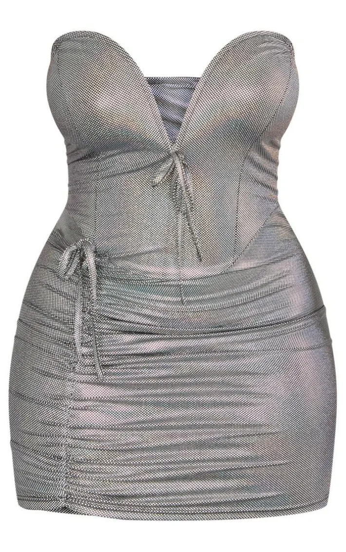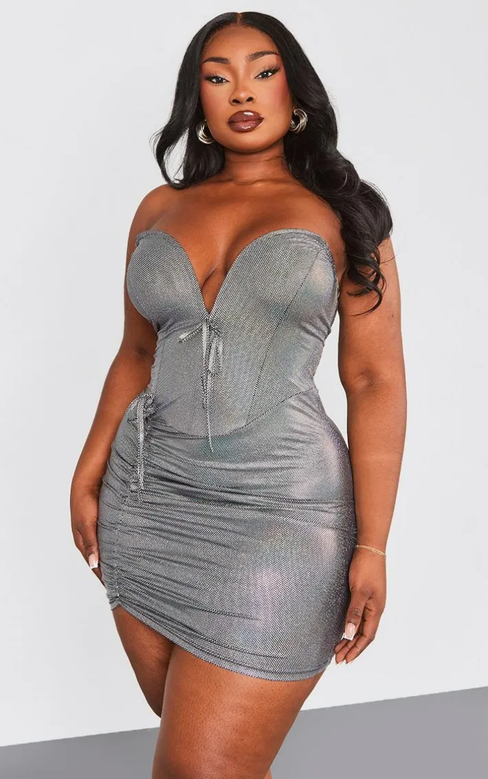 Dare to go bold this season with this plus silver metallic v bar bodycon dress, you won’t be able to resist. Made using a silver hue metallic material with a V bar design and a figure-worshipping fit, get ready to show off your confident side in this bodycon dress. Team it with your highest heels and hoop earrings for a look that is perfect for your next event.