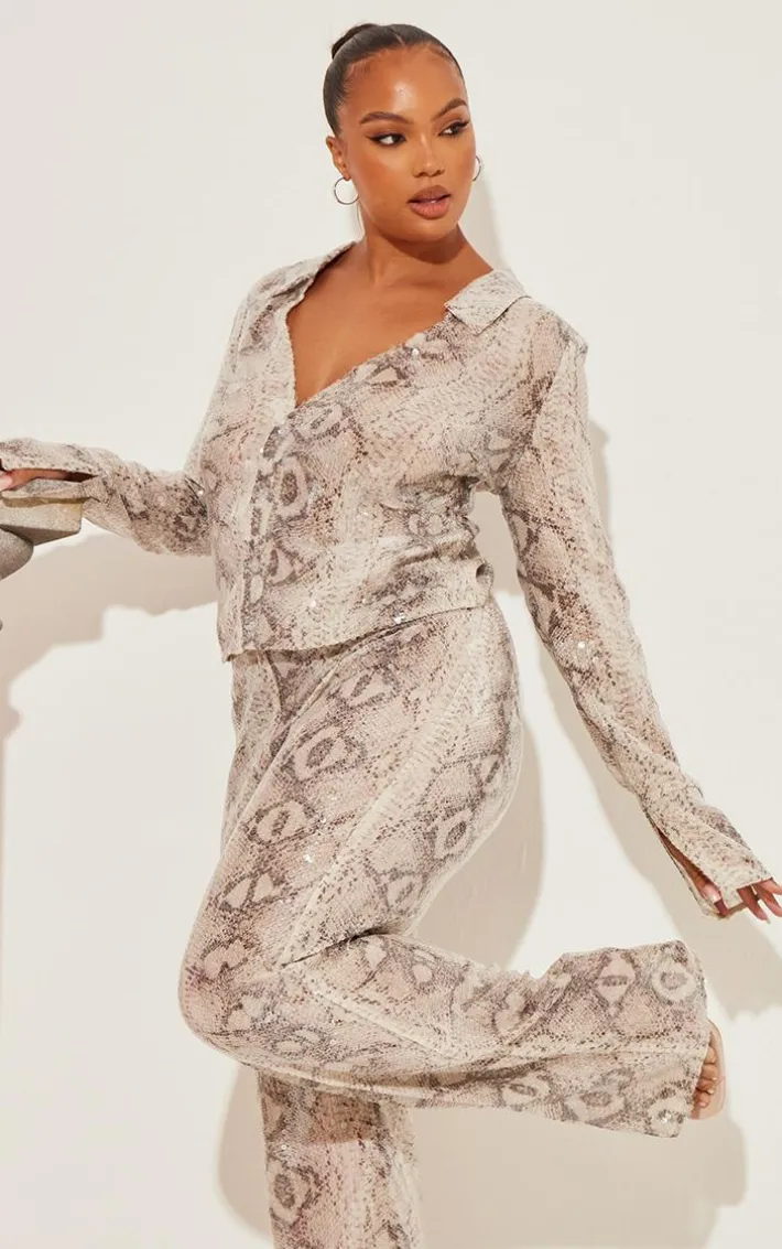 These plus silver snake sequin wide leg pants are here to banish any of your what to wear dilemmas. Brought to you in a silver snake sequin material with a wide leg design, we can’tget enough. From start to finish these unreal pants will have you looking totally on-trend. For a next level look, simply style with your fave accessories, the matching top and heels. They’re a yes from us.