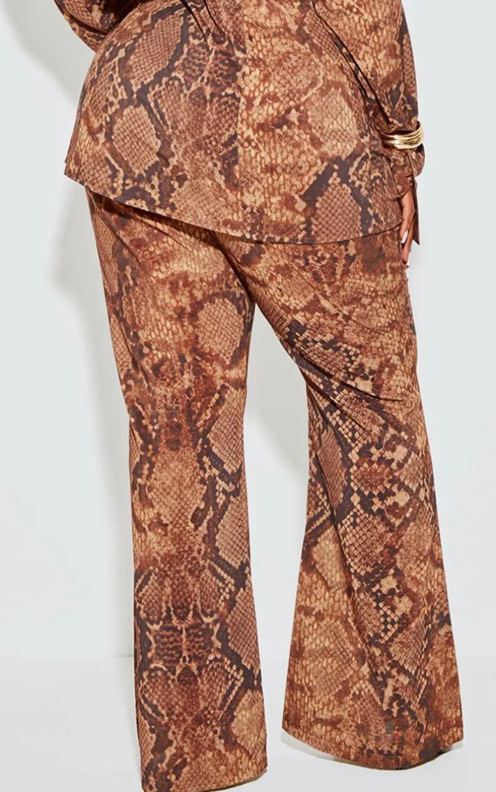Make a statement this weekend with these plus snake print chiffon flare pants. We’re in love with their flare leg fit, chiffon fabric and ultimate snake print pattern. Team with the matching snake print shirt, high heels and a gold bangle for a look that won’t go unnoticed.