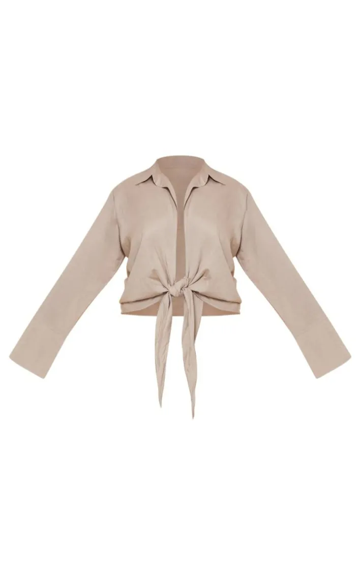 Say hello to your new season staple with this plus stone linen look oversized tie front shirt. Brought to you in a stone linen look material with an oversized fit and a tie front, what more could you want? This plus tie front shirt is here to banish any of your what to wear dilemmas. Style with the matching skirt, clear high heels and gold accessories for a look that have you being the topic of everyone’s conversation.