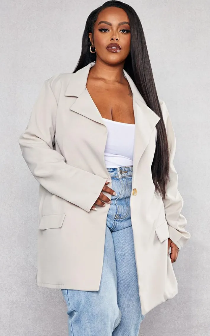This plus stone oversized longline blazer is sure to amp up your outfit of the day. This unreal blazer is brought to you in a stone hue, perfect to add some edge to your neutral collection. With an oversized fit, this versatile blazer can be dressed up or down whatever the occasion. Style with some of your go-to staple jeans and a cute white top for an effortlessly chic look we are obsessing over.
