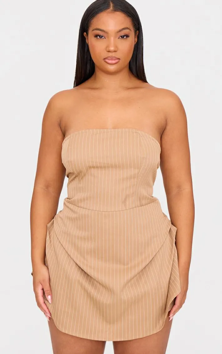 Switch up your new season style game with this plus stone pinstripe woven bandeau ruched side skort romper. Brought to you in a stone pinstripe woven material with a bandeau neckline and a ruched side design, what’s not to love? Style this skort romper with chunky boots and a faux leather jacket for a look that is sure to have all eyes on you.
