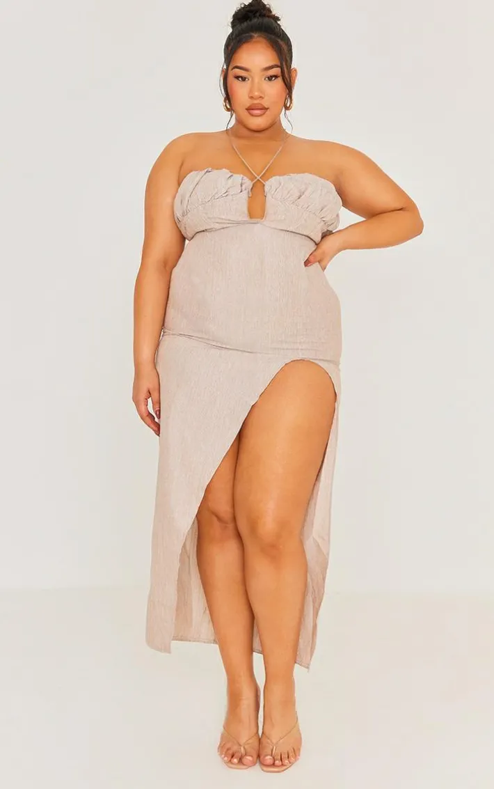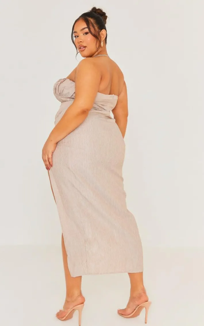 Enter the new season in style with this plus stone side split halterneck midi dress. Brought to you in a stone hue material with a halterneck design and side split detailing, how can you not fall in love? Seriously chic and in a figure-worshipping midi fit, you really can’t go wrong. Style this plus dress with statement accessories and heels for a look worthy of your weekend plans and beyond.