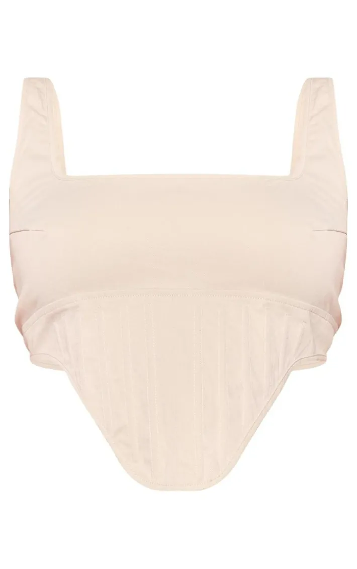 We are obsessing over this corset top for your new season wardrobe. Featuring a stone twill material with a dip hem design and a structured corset style. Team this with the matching bottoms and some contrasting heels for a simple but chic combo.
