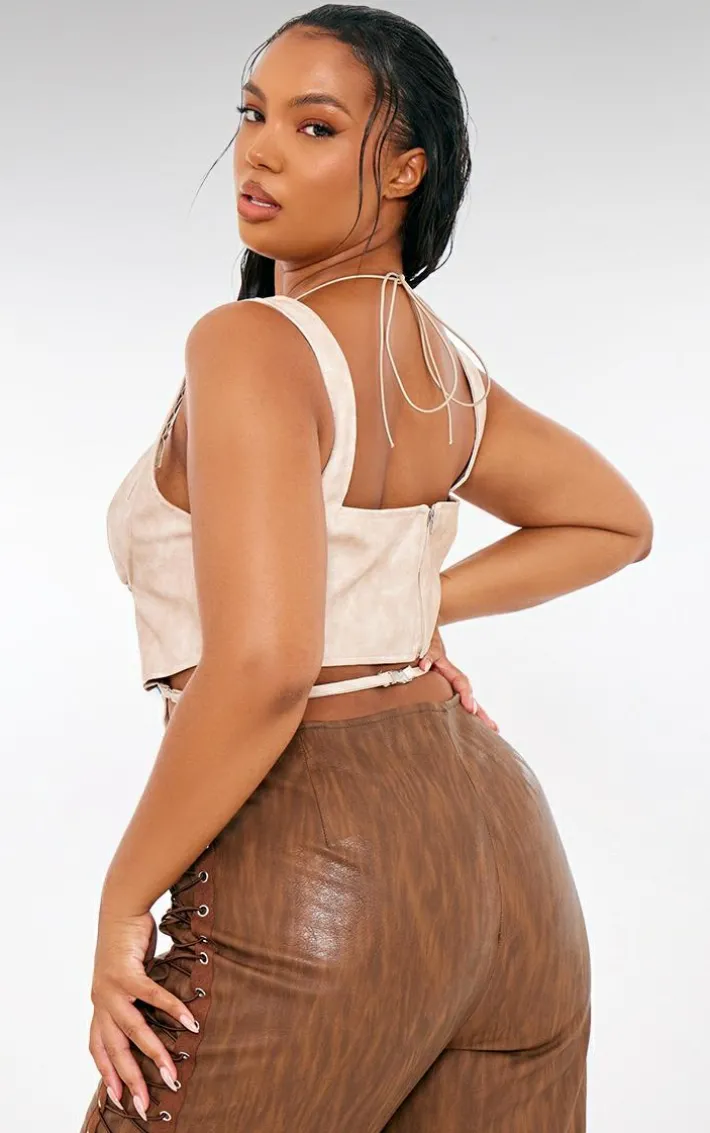 Steal all the stares in this plus stone washed faux leather cross halterneck dip hem corset. Brought to you in a stone washed hue faux leather material with a cross halterneck design and dip hem detail, this corset is at the top of our wish list. How can you resist? Style with brown lace up pants, a pair of brown heels and simple accessories for a look that won’t go unnoticed.