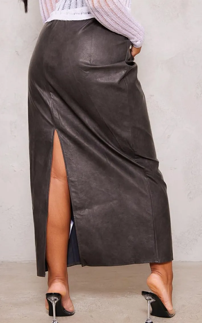 This plus washed black faux leather maxi skirt is sure to take your look that extra mile. This unreal skirt is brought to you in a washed black faux leather material with a maxi length, what more could you want ? Whether you have an important occasion pencilled in your diary, or you want to add a little extra edge to your look, this skirt is perfect for you. Team with some clear heels to take your look from day to night instantly.