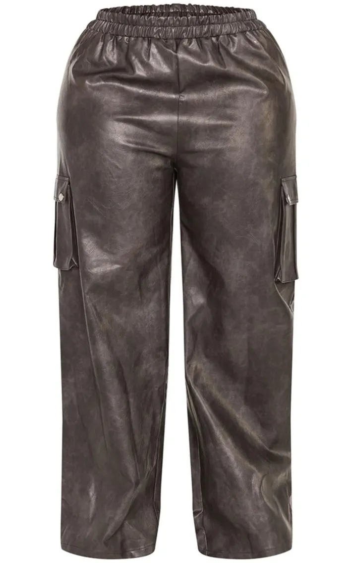 Stay on-trend for the new season and beyond with these plus washed black faux leather wide leg high waisted cargo pants. Brought to you in a washed black faux leather material with a flattering high waisted fit and a wide leg design, we are obsessed. In an on-trend cargo style, these plus pants are sure to have you earning some serious style points. Wear with a chic corset, heels and a mini bag for a look that will steal all the stares.