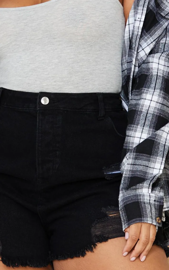 Meet your new season wardrobe essential with these shorts. Featuring a washed black material with a distressed hem design and a high waisted fit. Team with a bodysuit, an oversized shirt and fresh kicks for the perfect off-duty fit.