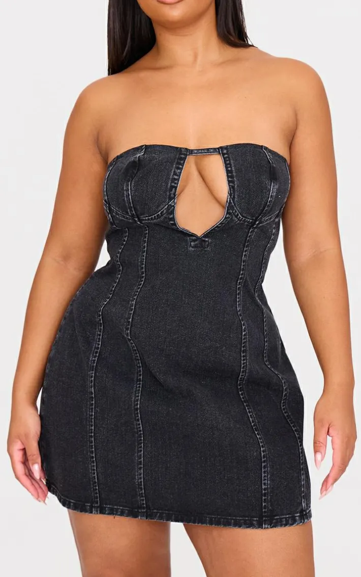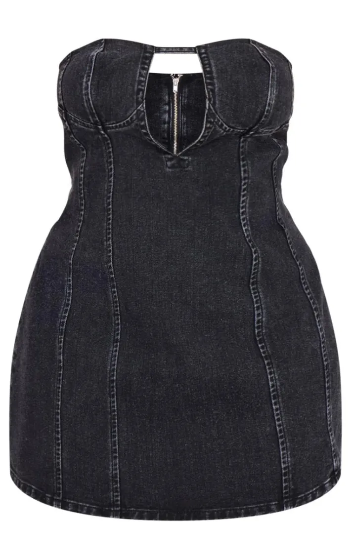 Bag this plus washed black plunge detail strapless denim mini dress for a look that won’t go unnoticed. Brought to you in an edgy washed black hue, with a flattering plunge detail and denim material, how can you say no? Team this dress with minimal accessories and faux leather boots to complete the look.